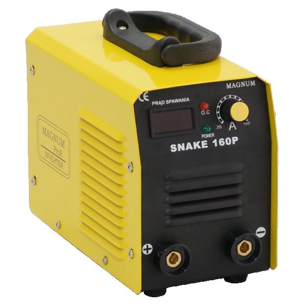 Urządzenie inwerterowe Snake 160 PS jest lekkim, przenośnym źródłem energii. Służy do spawania elektrodami otulonymi różnych gatunków stali w tym zwykłych, nierdzewnych, żaroodpornych oraz żeliwa. Przeznaczone jest do pracy w warunkach terenowych i wykonywania wszelkiego rodzaju prac naprawczych. Urządzenie charakteryzuje się dużą sprawnością 160 A/60%. Posiada znakomitą charakterystykę łuku dla elektrod rutylowych i zasadowych.